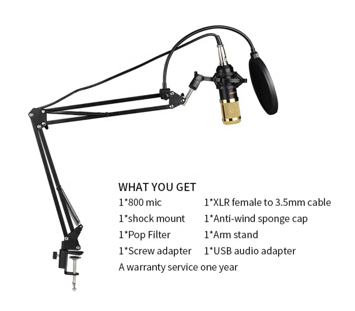 BM800 Condenser Microphone: A high-performance mic for detailed audio capture.