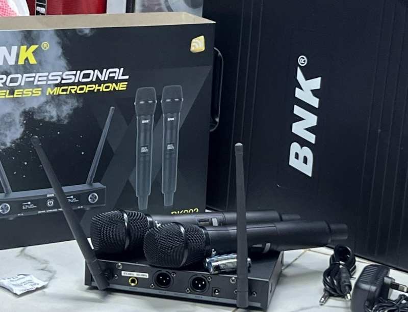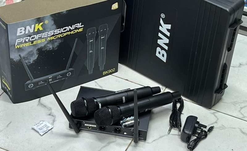 The BNK 902 Professional UHF Wireless Microphone System is designed for reliable, high-quality sound performance in churches, events, conferences and live shows. This dual-channel system includes two handheld microphones and a receiver, delivering stable wireless operation and clear vocal reproduction.