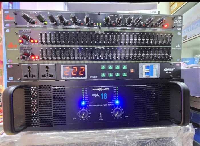 At the center of this rack, the CA18 power amp drives subwoofers and full-range cabinets with authority. It produces deep, controlled bass while maintaining clean mids and crisp highs.