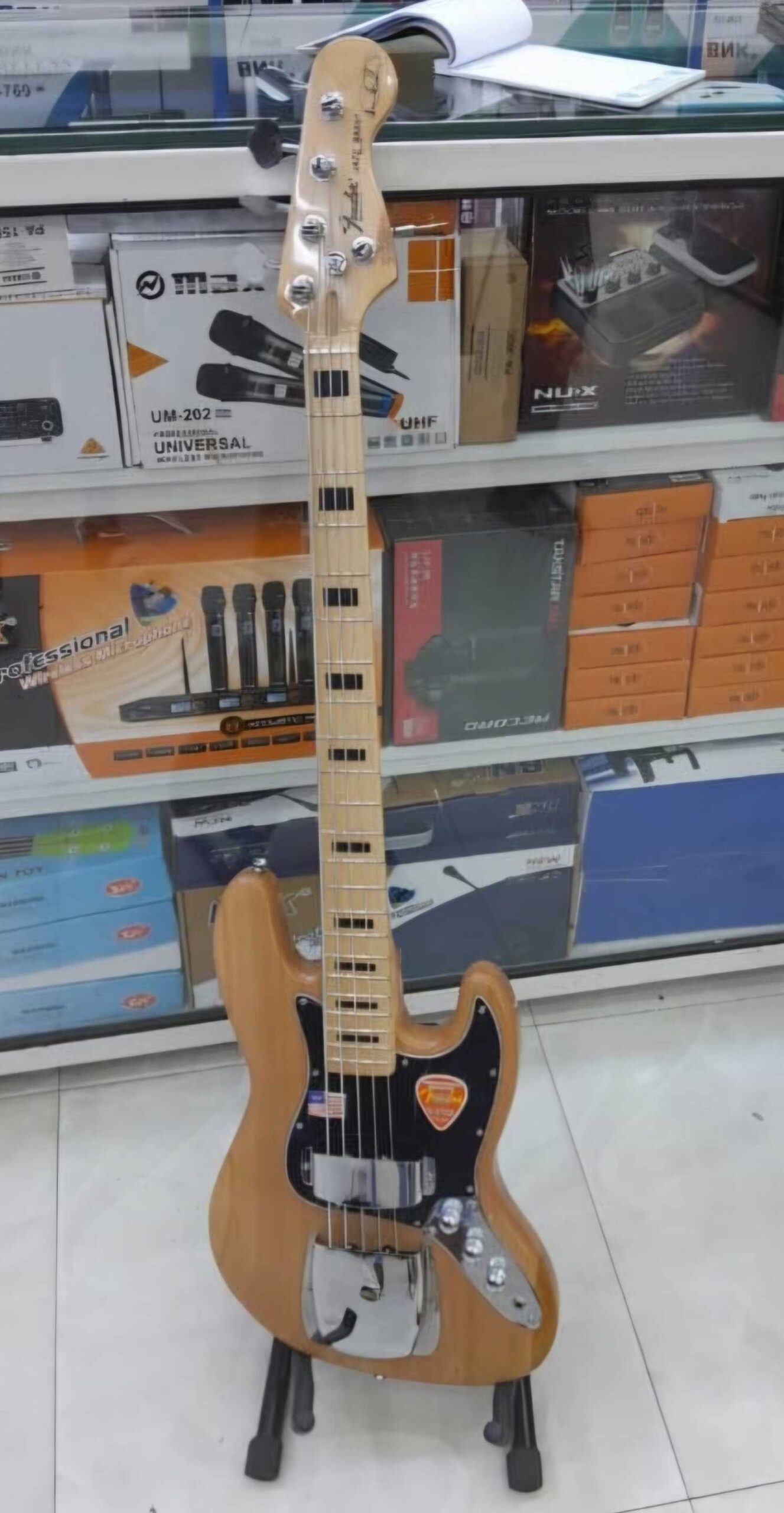 It features dual single-coil J-Bass pickups.