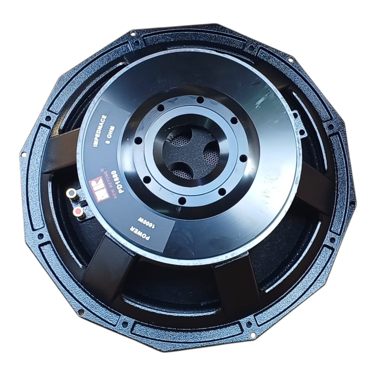 Experience deep, earth-shaking low frequencies with the New Retone PD1880. This heavy-duty 18-inch professional subwoofer is engineered for audio enthusiasts and sound engineers who demand high-output performance and reliability. Built with a reinforced cast aluminum chassis and a high-density ferrite magnet, it provides the structural integrity needed to handle intense vibrations and continuous use in demanding environments.
