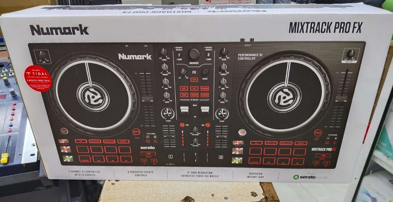 Numark Mixtrack Pro FX 2-deck DJ controller. Key features include: