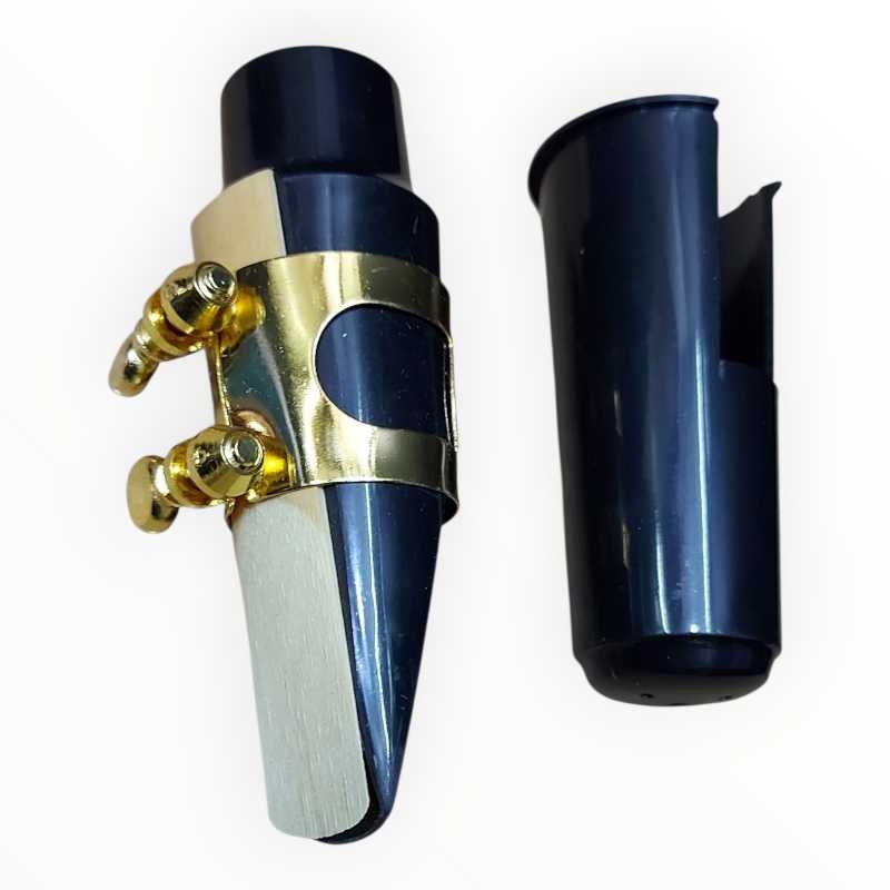 The kit features a striking gold-plated metal ligature with a dual-screw adjustment system, providing a secure hold for your reed while allowing for maximum vibration and resonance. To keep your equipment in top condition, it comes with a protective plastic mouthpiece cap that prevents dust buildup and safeguards the delicate tip when not in use.