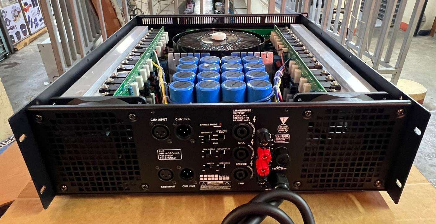 Features XLR and 1/4″ balanced inputs, Speakon® and binding post outputs.
