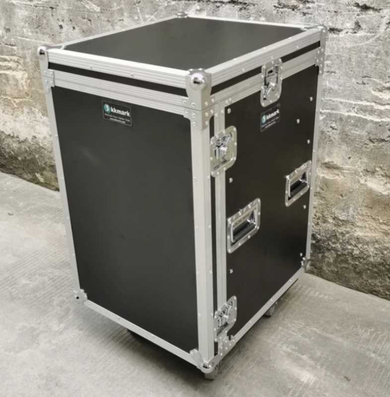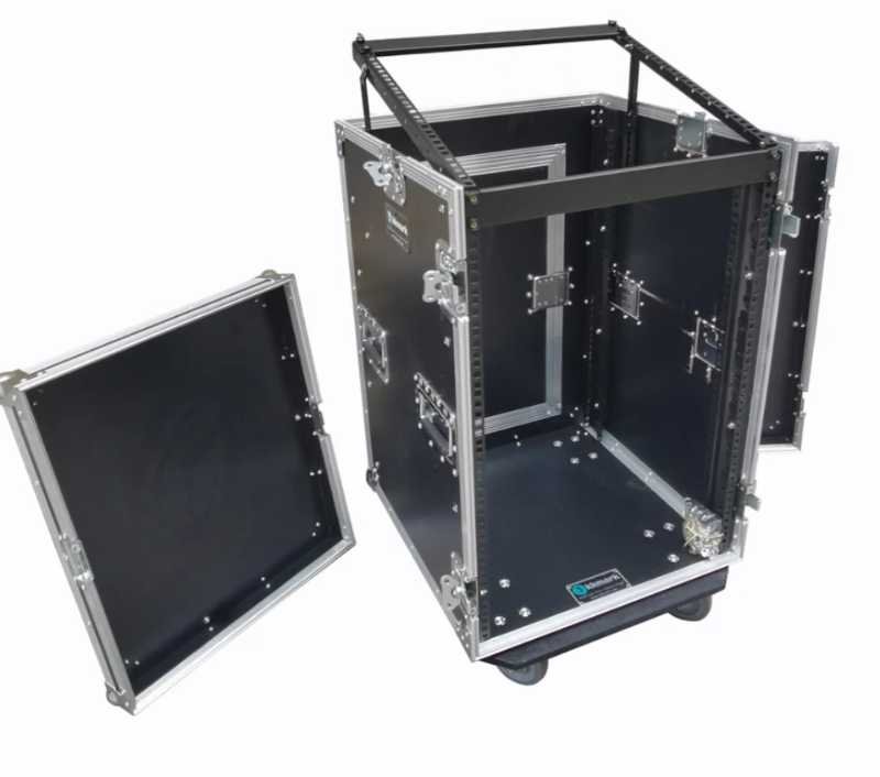 The versatile design includes a slanted top rack specifically engineered for mounting mixing consoles at an ergonomic angle for easy access during live performances. The vertical rack space provides ample room for power amplifiers, signal processors, and wireless receivers. Equipped with four industrial-grade caster wheels and recessed spring-loaded handles, this road case ensures smooth mobility and secure handling for DJs, touring bands, and professional production crews. Removable front and top covers allow for quick setup, easy access to controls, and efficient cable management.