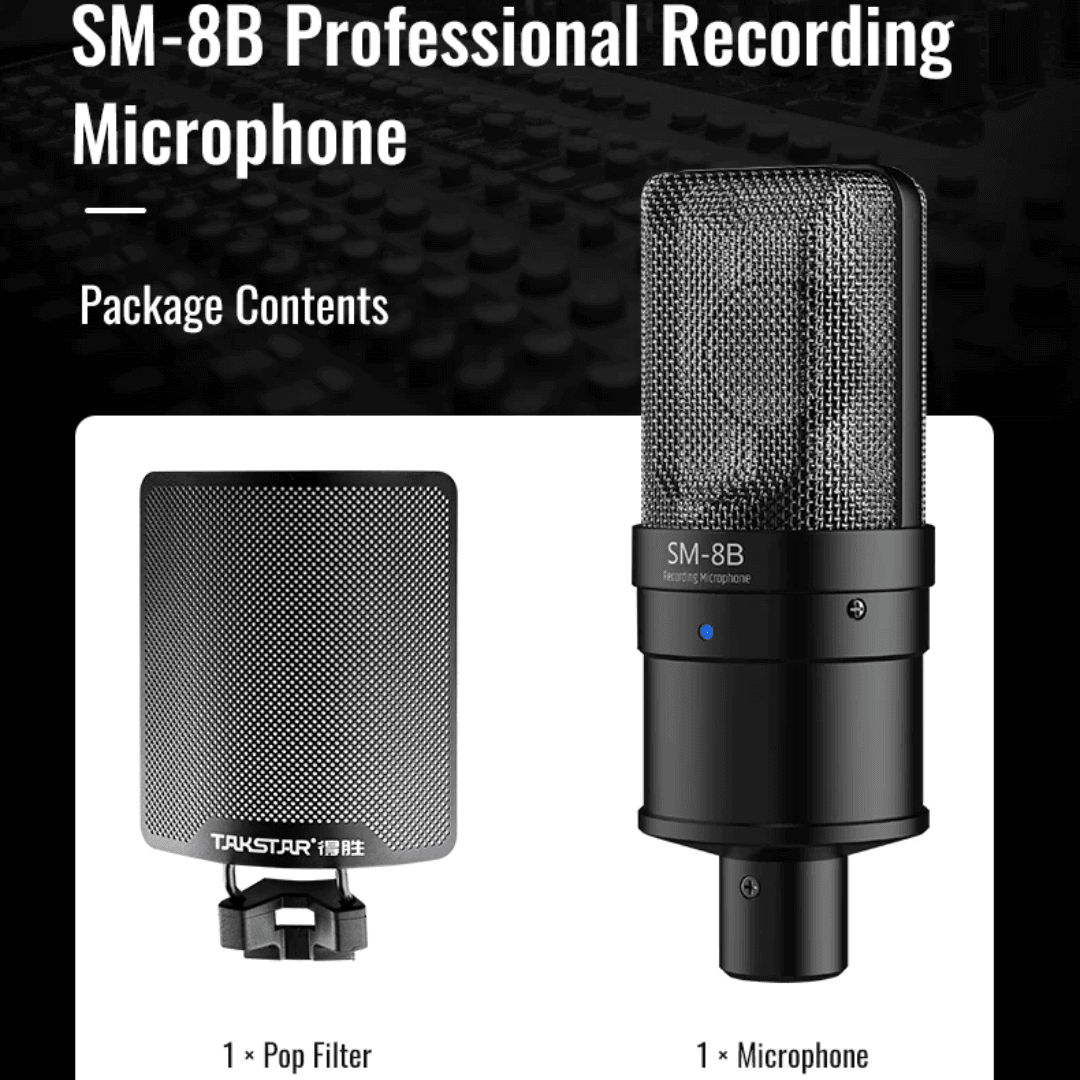 Elevate your audio production with the Takstar SM-8B (2nd Generation), a professional-grade condenser microphone designed for studio-quality precision. Featuring an upgraded 16mm gold-plated capsule, it delivers a rich midrange and crystal-clear highs, ideal for vocals, podcasts, and instrument recording.